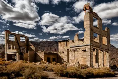 The financial panic of 1907 took its toll on Rhyolite and was seen as the beginning of the end for the town. In the next few years mines started closing and banks failed. Newspapers went out of business, and by 1910 the production at the mill had slowed to $246,661 and there were only 611 residents in the town. On March 14, 1911 the directors voted to close down the Montgomery Shoshone mine and mill. In 1916 the light and power were finally turned off in the town.